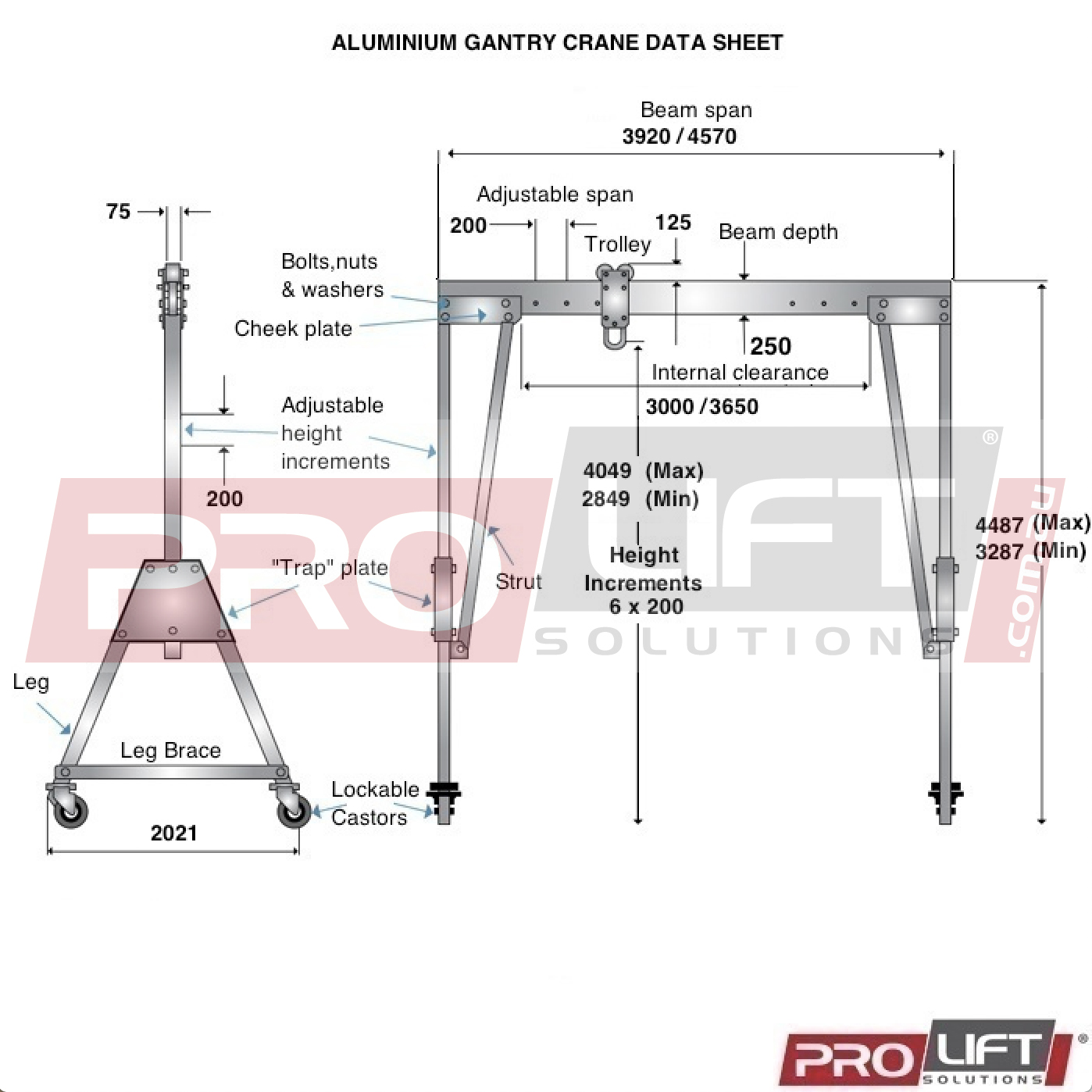 This light weight mobile aluminium gantry crane is extremely versatile whilst being portable, safe and very strong.