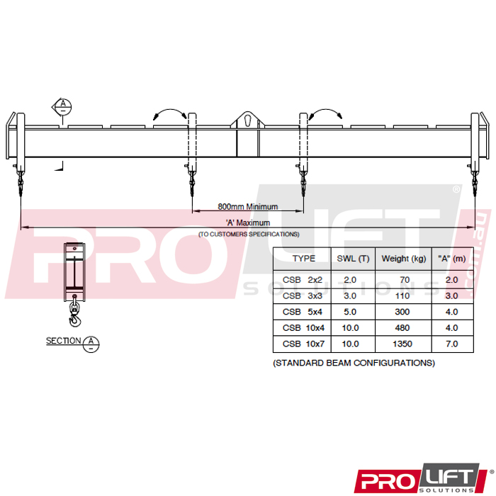 The CSB Crane Spreader Beam is available in a range of capacities and lengths to suit any application. Crane Spreader Beams are supplied standard with 5 lift positions and fitted with 2 safety swivel hooks.