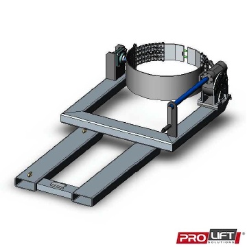 This slip-on attachment requires only the connection of a safety chain to a narrow carriage Forklift. The